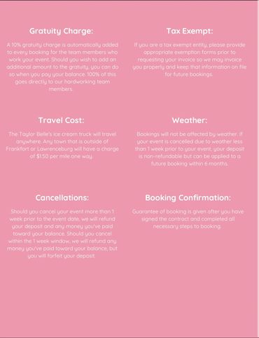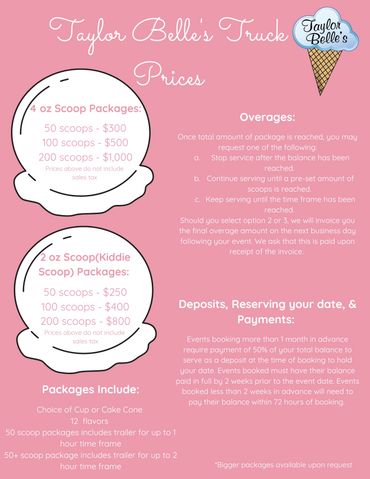 Please email us at booking@taylorbellesicecream.com to book a unit with us! Please include the following in your email: Date, Time, Location, Package you are interested in, and if you are inquiring about the food truck or ice cream truck!